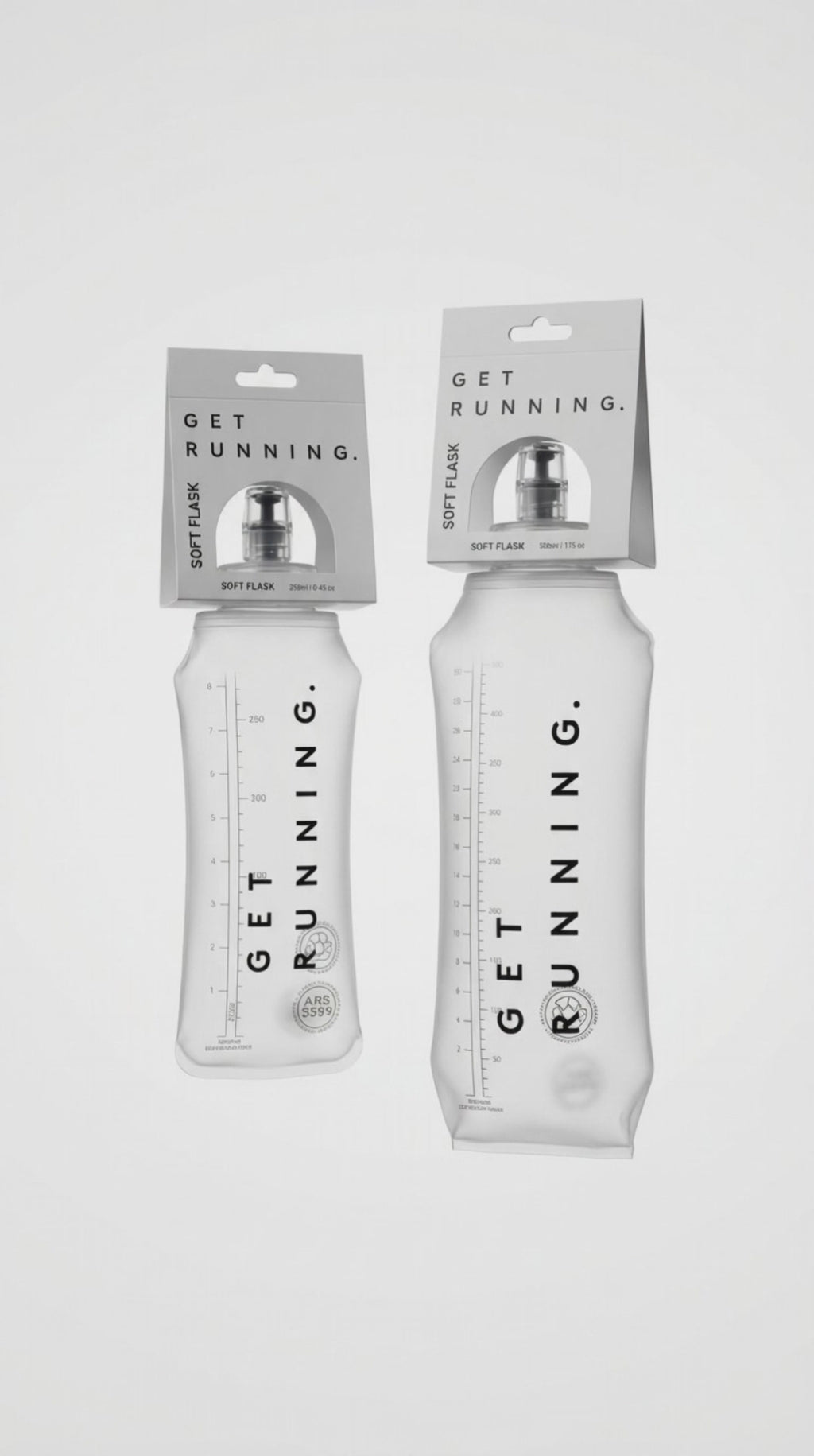 Designed by runners, for runners who know that carrying water shouldn't feel like carrying a dumbbell. Our Soft Flask tucks neatly into your hand or pack, expands when you need it, disappears when you don't. Less weight, less waste, available in two sizes, and more GetRunning energy.
